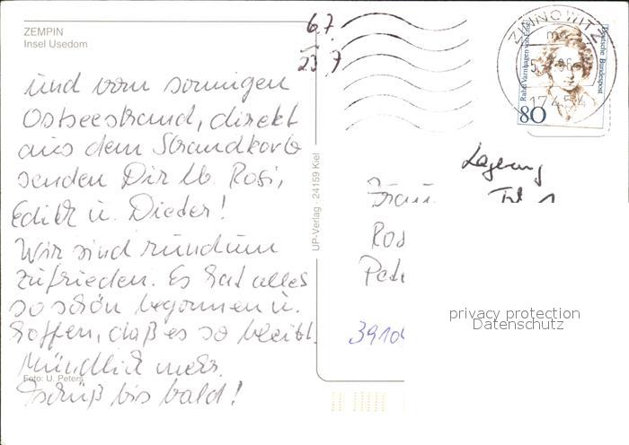 72590380 alte Postkarte Zempin Fliegeraufnahme mit Strand postalisch gelaufen Erhaltung siehe scans [LiesaD40] KatCode: 11110013059105
