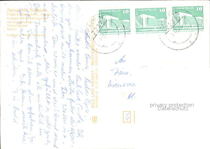 72328067 alte Postkarte Zempin Strand Konzertmuschel Camping Kurpark Achterwasser postalisch gelaufen Erhaltung siehe scans KatCode: 11110013059105