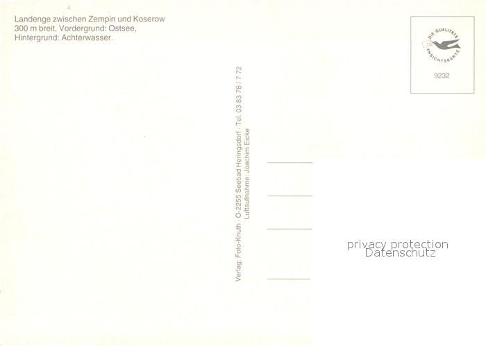 72961284 Zempin und Koserow Fliegeraufnahme mit Achterwasser postalisch nicht gelaufen Erhaltung siehe scans [WerneD78] KatCode: 11110013059105