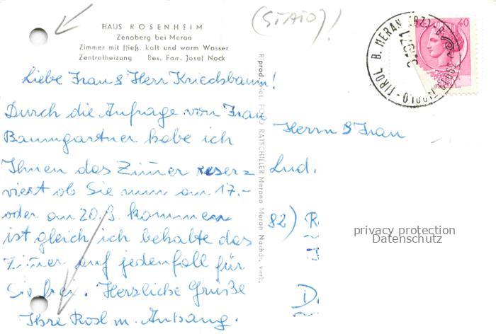 74080152 old postcard Zenoberg Zenoburg Dorf-Tirol Suedtirol IT Haus Rosenheim postalisch gelaufen Erhaltung siehe scans [WerneD78] KatCode: 11240