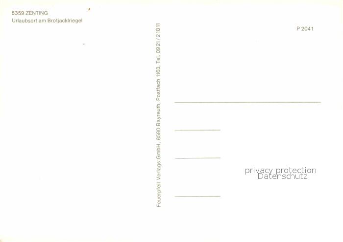 72714438 Zenting am Brotjacklriegel postalisch nicht gelaufen Erhaltung siehe scans [LiesaD40] KatCode: 11110009272152