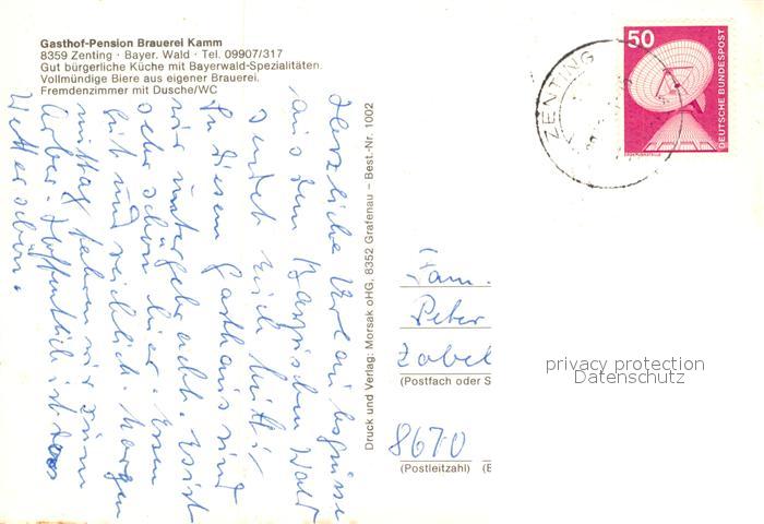 73296242 alte Postkarte Zenting Gasthof Pension Brauerei Kamm Gastraeume Panorama postalisch gelaufen Erhaltung siehe scans [WerneD78] KatCode: 11110009272152