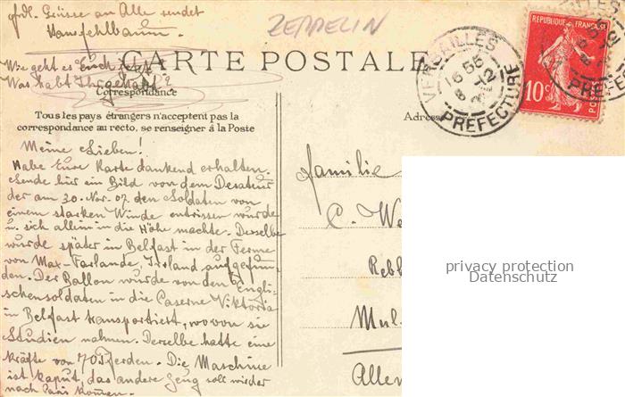 14103694 Zeppelin Aufklaerungs-Luftschiff Militaria Aviatik Sports Aerostation postalisch gelaufen Erhaltung siehe scans [SanaeD93] alte Postkarte Sana Katcode 22300040040040