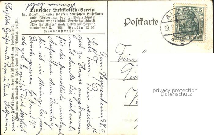 12149301 Zeppelin Fesselballon Artillerie Hans Rudolf Schulze Deutscher-Luftflotten-Verein KatCode 22120000000600