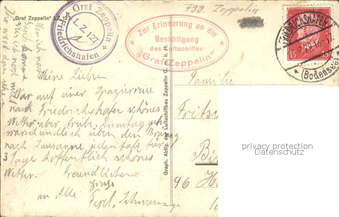12918788 Zeppelin Luftschiffhalle Graf Zeppelin LZ 127 Besichtigung Friedrichshafen postalisch gelaufen Erhaltung siehe scans [PaolaD17] alte Postkarte Paol Katcode 22120000000600