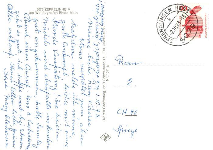 73876971 alte Postkarte Zeppelinheim Neu-Isenburg Denkmal Buergeerhaus Buchenring Gasthof Forsthaus postalisch gelaufen Erhaltung siehe scans [FriedD77] KatCode: 11110006438009