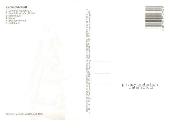 73205740 Zerbst Denkmal Katharina II. Geschaeftsstrasse Breite Markt Gildehaus postalisch nicht gelaufen Erhaltung siehe scans [PaolaD17] KatCode: 11110015082430