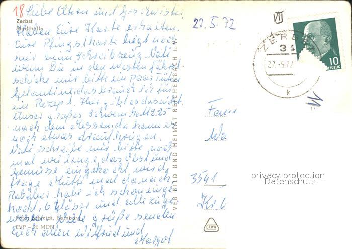 72115858 alte Postkarte Zerbst Stadthalle postalisch gelaufen Erhaltung siehe scans KatCode: 11110015082430