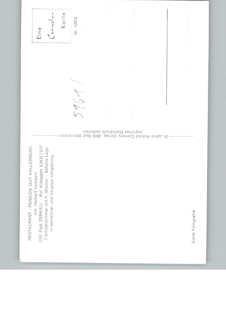 31137220 Zerkall Hotel – Pension Kallerbend postalisch nicht gelaufen KatCode: 11110005358016
