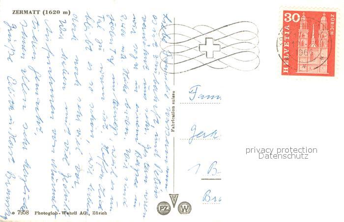 13664923 alte Postkarte Zermatt VS Ortszentrum postalisch gelaufen Erhaltung siehe scans [FriedD77] KatCode: 11470230750772