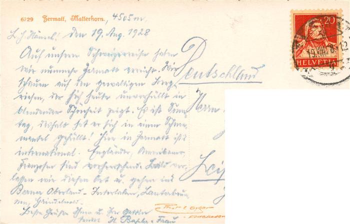 13949938 alte Postkarte Zermatt VS Panorama Blick gegen Matterhorn postalisch gelaufen Erhaltung siehe scans [FriedD77] KatCode: 11470230750772