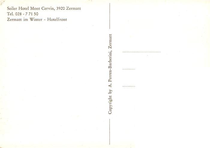 13905736 Zermatt VS Seiler Hotel Mont Cervin Hotelfront postalisch nicht gelaufen Erhaltung siehe scans [WerneD78] KatCode: 11470230750772