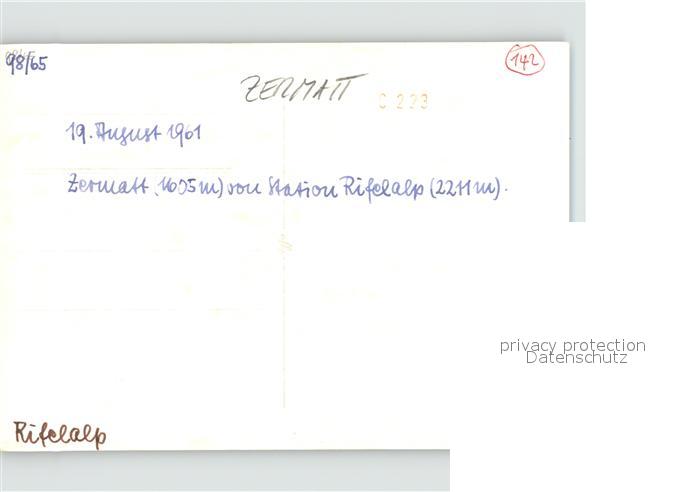 11908516 Zermatt VS von Rifelalp gesehen postalisch nicht gelaufen Foto (keine Postkarte) Erhaltung siehe scans KatCode: 11470230750772