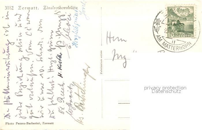 13747855 alte Postkarte Zermatt VS Zinalrothornhuette postalisch gelaufen Erhaltung siehe scans [WerneD78] KatCode: 11470230750772