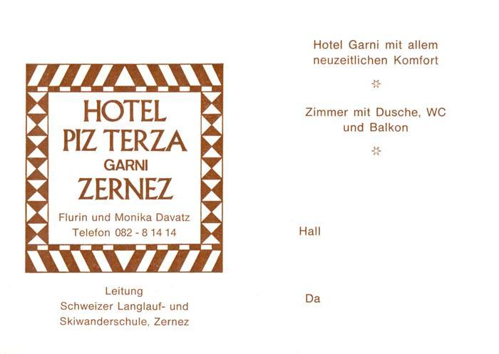 13920037 Zernez GR Hotel Piz Terza Zimmer Gaststube Panorama postalisch nicht gelaufen Werbekarte (keine Postkarte) Erhaltung siehe scans [WerneD78] KatCode: 11470100325182