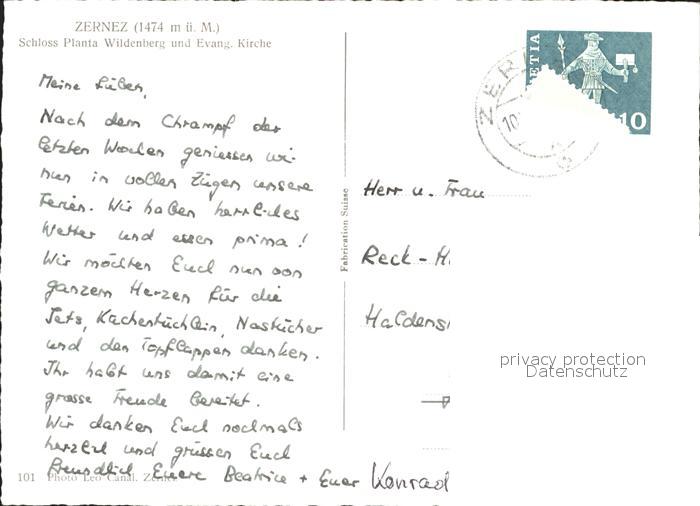 11658830 alte Postkarte Zernez GR Schloss Planta Wildenberg und Ev Kirche postalisch gelaufen Erhaltung siehe scans KatCode: 11470100325182