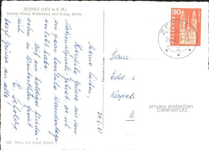 11658825 alte Postkarte Zernez GR Schloss Wildenberg und Ev Kirche postalisch gelaufen Erhaltung siehe scans KatCode: 11470100325182