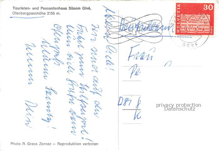 34145016 alte Postkarte Zernez GR Touristen- und Passantenhaus Suesom Givé Ofenbergpasshoehe postalisch gelaufen Erhaltung siehe scans [FriedD77] KatCode: 11470100325182
