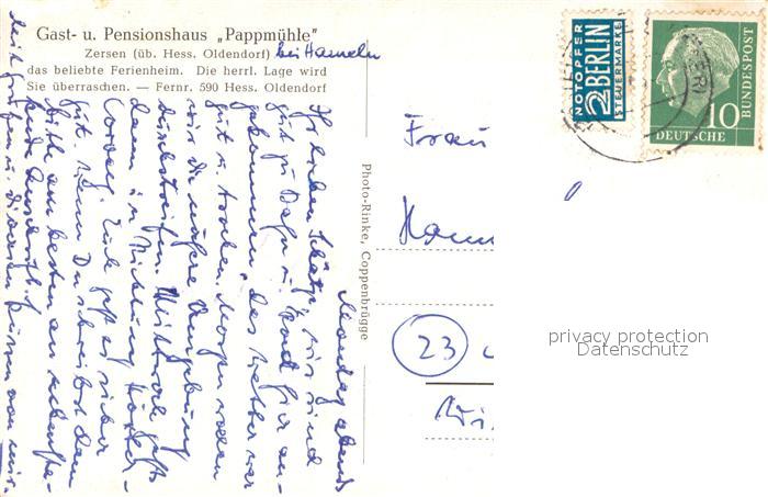 73708875 alte Postkarte Zersen Gasthaus Pension Pappmuehle Kastanienbaum in Bluete postalisch gelaufen Erhaltung siehe scans [FriedD77] KatCode: 11110003252007