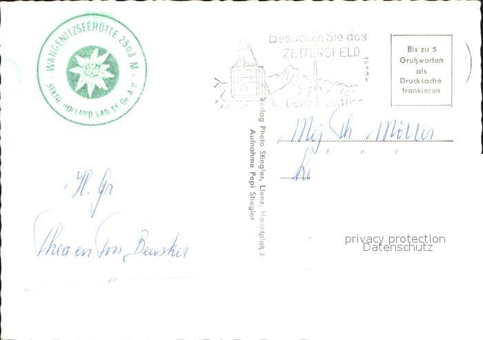 72409350 alte Postkarte Zettersfeld Tirol Wangennitzerhuette Bergsee postalisch gelaufen Erhaltung siehe scans KatCode: 11390333070731