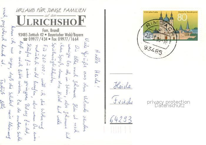 73543075 alte Postkarte Zettisch Hotel Ulrichshof Bayerischer Wald postalisch gelaufen Erhaltung siehe scans [FriedD77] KatCode: 11110009372151