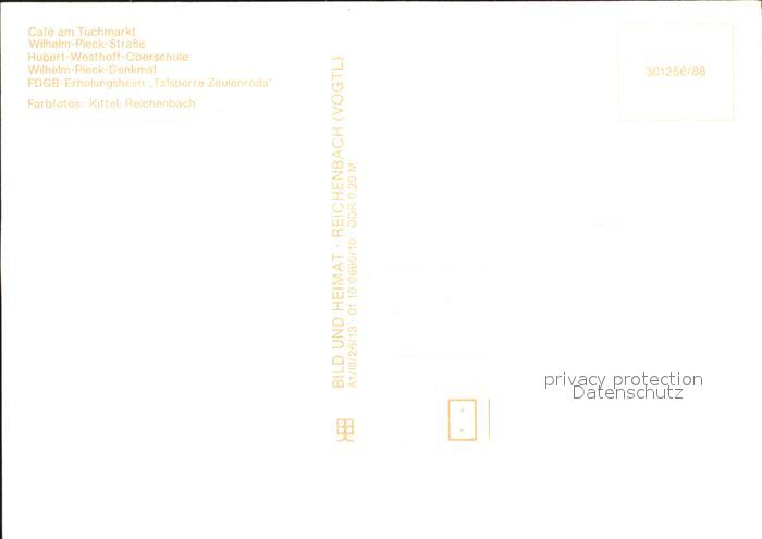 72049522 Zeulenroda Cafe am Tuchmarkt Wilhelm Pieck Str Hubert Westhoff Oberschule Pieck Denkmal FDGB Erholungsheim postalisch nicht gelaufen KatCode: 11110016076087