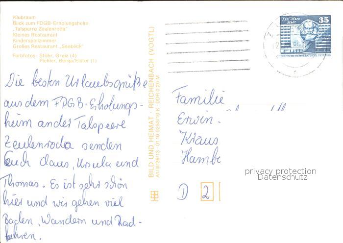 72503928 alte Postkarte Zeulenroda-Triebes Erholungsheim Talsperre Kinderspielzimmer Kleines Restaurant postalisch gelaufen Erhaltung siehe scans KatCode: 11110016076087
