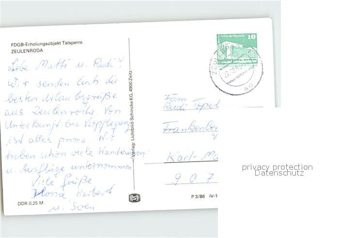 72383998 alte Postkarte Zeulenroda-Triebes FDGB-Erholungsobjekt Talsperre postalisch gelaufen Erhaltung siehe scans KatCode: 11110016076087