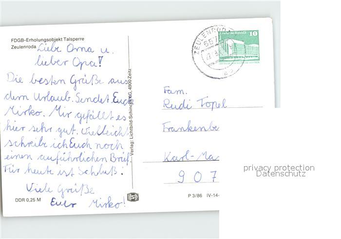 72383997 alte Postkarte Zeulenroda-Triebes FDGB- Erholungsobjekt Talsperre postalisch gelaufen Erhaltung siehe scans KatCode: 11110016076087