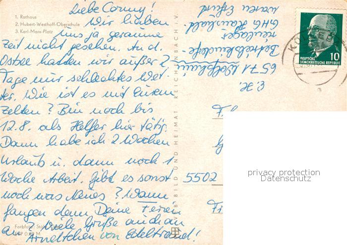 73071276 alte Postkarte Zeulenroda-Triebes Rathaus Hubert Westhoff Oberschule Karl Marx Platz postalisch gelaufen Erhaltung siehe scans [FriedD77] KatCode: 11110016076087
