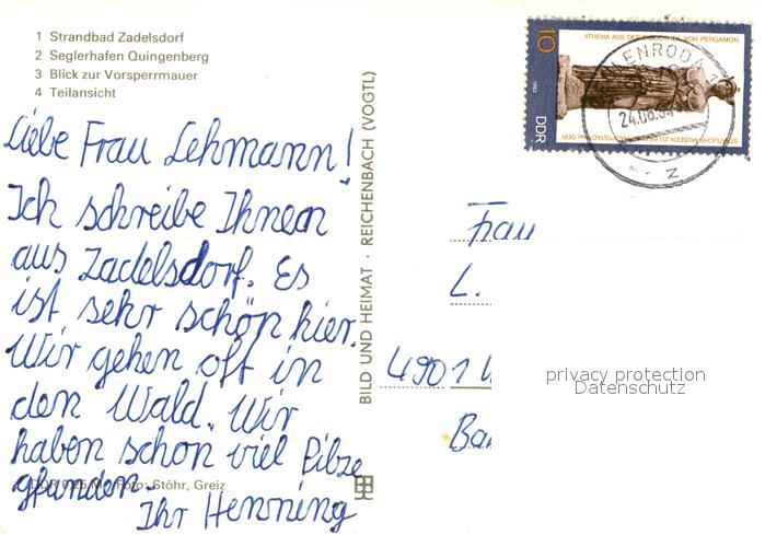 73043797 alte Postkarte Zeulenroda-Triebes Strandbad Zadelsdorf Seglerhafen Quingenberg Vorsperrmauer Teilansicht postalisch gelaufen Erhaltung siehe scans [WerneD78] KatCode: 11110016076087