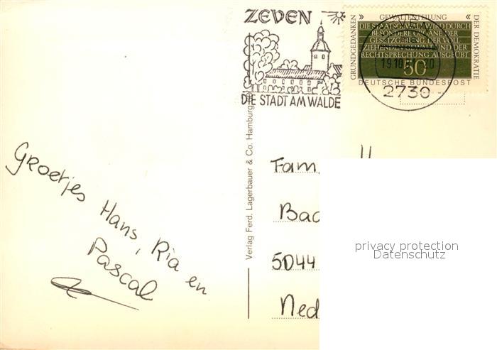 73306649 alte Postkarte Zeven Schulstr Langestr Jugendherberge Kloster Kirche Fontaene postalisch gelaufen Erhaltung siehe scans [WerneD78] KatCode: 11110003357057