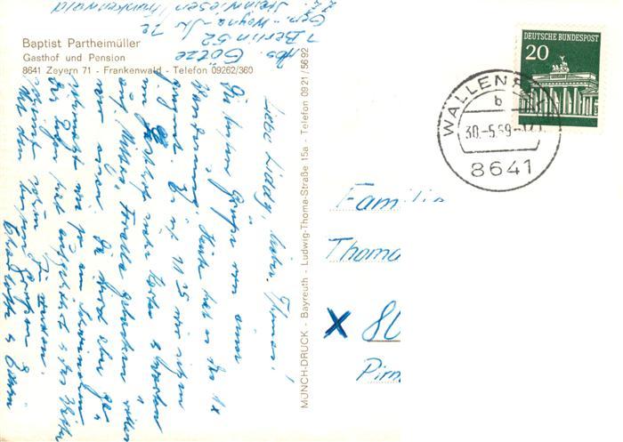 73895114 alte Postkarte Zeyern Baptist Partheimueller Gasthof Pension postalisch gelaufen Erhaltung siehe scans [WerneD78] KatCode: 11110009476183