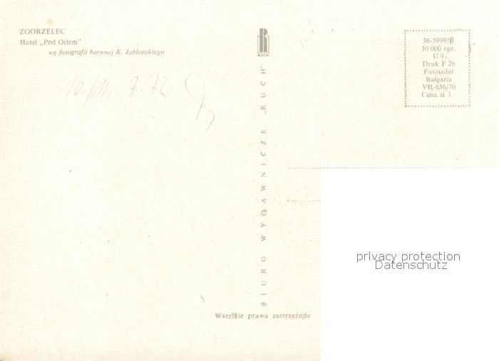 13223065 Zgorzelec Hotel Pod Orlem postalisch nicht gelaufen Erhaltung siehe scans [LiesaD40] KatCode: 11410