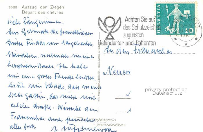 alte Postkarte Ziege Auszug der Ziegen postalisch gelaufen Erhaltung siehe scans [PaolaD17]