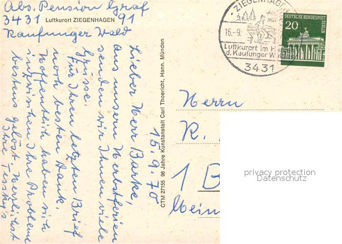 72919396 alte Postkarte Ziegenhagen Witzenhausen postalisch gelaufen Erhaltung siehe scans [NatalD47] KatCode: 11110006636016