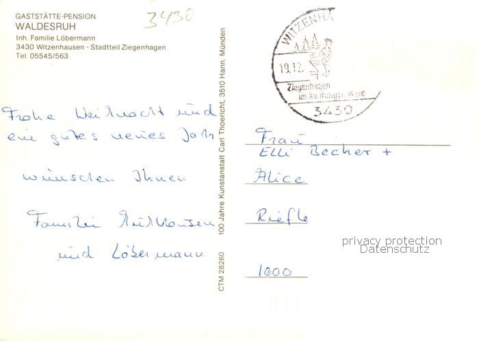 73859251 alte Postkarte Ziegenhagen Witzenhausen Gaststaette Pension Waldesruh Gastraeume Panorama postalisch gelaufen Erhaltung siehe scans [WerneD78] KatCode: 11110006636016