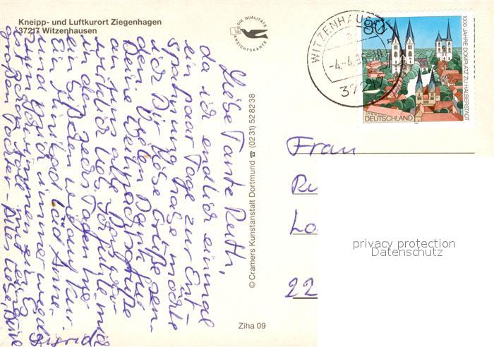 73181817 alte Postkarte Ziegenhagen Witzenhausen Ortsmotive Kneipp Luftkurort Kirche Fliegeraufnahme postalisch gelaufen Erhaltung siehe scans [FriedD77] KatCode: 11110006636016