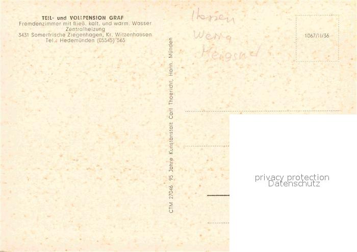 72919397 Ziegenhagen Witzenhausen Teil- Vollpension Graf postalisch nicht gelaufen Erhaltung siehe scans [NatalD47] KatCode: 11110006636016