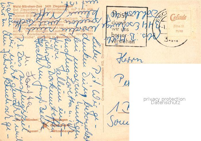 73312968 alte Postkarte Ziegenhagen Witzenhausen Wald Maerchen Zoo postalisch gelaufen Erhaltung siehe scans [KathaD81] KatCode: 11110006636016