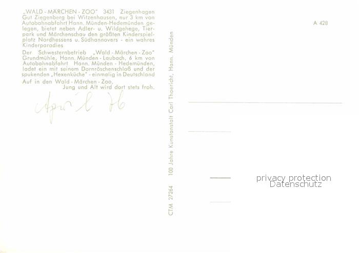 72701357 Ziegenhagen Witzenhausen Wald Maerchen Zoo postalisch nicht gelaufen Erhaltung siehe scans [KathaD79] KatCode: 11110006636016