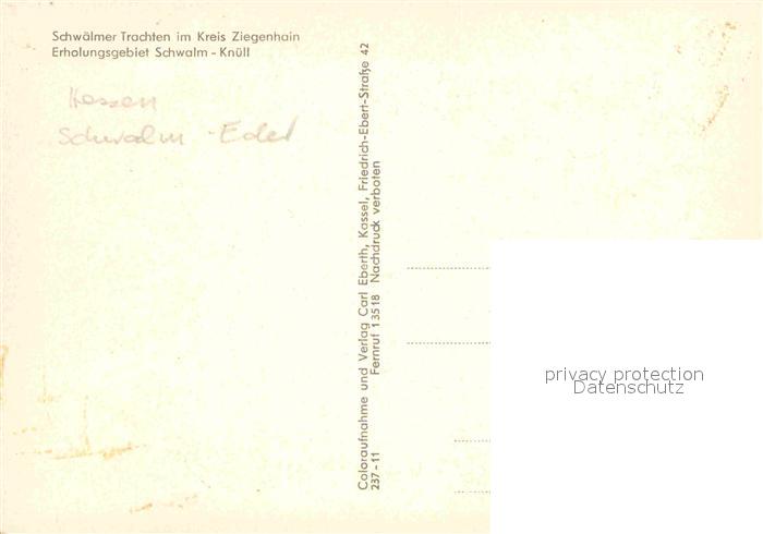 72889854 Ziegenhain Hessen Schwaelmer Trachten Erholungsgebiet Schwalm Knuell postalisch nicht gelaufen Erhaltung siehe scans [FriedD77] KatCode: 11110006634022