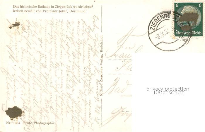 73811387 alte Postkarte Ziegenrueck Bemaltes Rathaus postalisch gelaufen Erhaltung siehe scans [FriedD77] KatCode: 11110016075127
