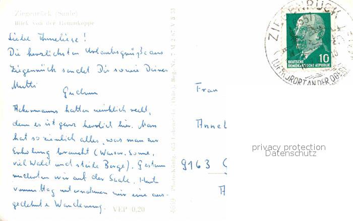 72728775 alte Postkarte Ziegenrueck Blick von der Hemmkoppe postalisch gelaufen Erhaltung siehe scans [FriedD77] KatCode: 11110016075127