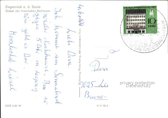 72443379 alte Postkarte Ziegenrueck Giebel des histor Rathauses postalisch gelaufen Erhaltung siehe scans KatCode: 11110016075127