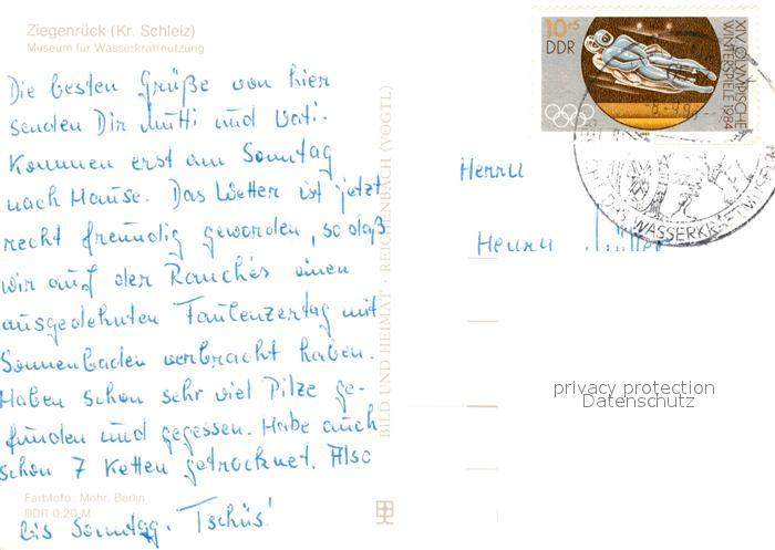 73070543 alte Postkarte Ziegenrueck Museum fuer Wasserkraftnutzung Wasserrad postalisch gelaufen Erhaltung siehe scans [FriedD77] KatCode: 11110016075127