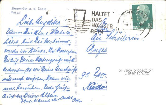72069814 alte Postkarte Ziegenrueck Saale Rathaus Fassadenmalerei postalisch gelaufen Erhaltung siehe scans KatCode: 11110016075127