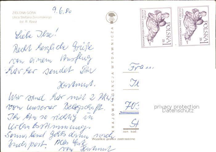 old postcard Zielona Gora Strassenpartie Stefana Zeromskiego postalisch gelaufen Erhaltung siehe scans