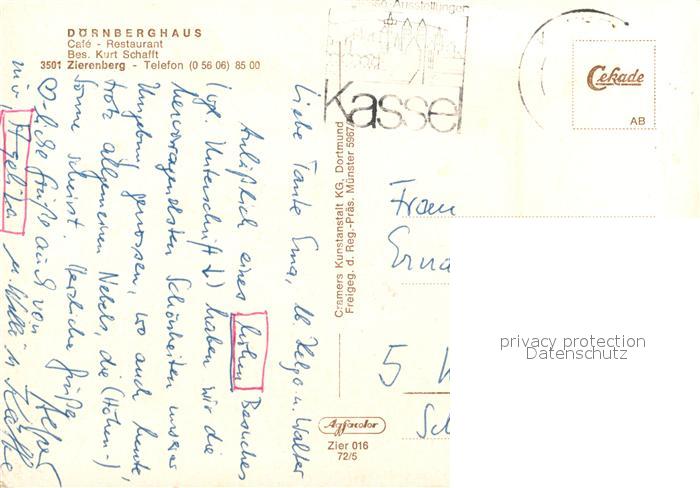 73171361 alte Postkarte Zierenberg Cafe Restaurant Doernberghaus Fliegeraufnahme postalisch gelaufen Erhaltung siehe scans [FriedD77] KatCode: 11110006633029