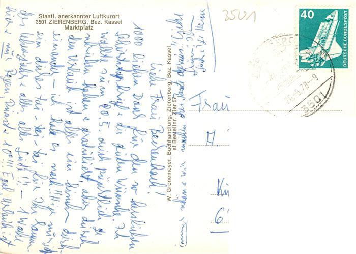 73935566 alte Postkarte Zierenberg Marktplatz postalisch gelaufen Erhaltung siehe scans [FriedD77] KatCode: 11110006633029
